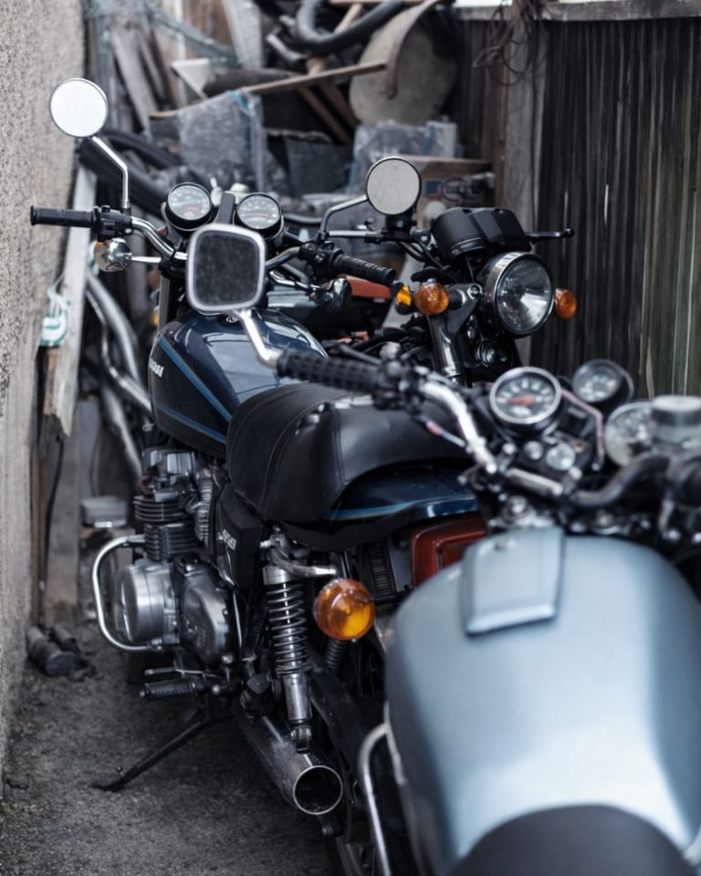A picture of the now returned Z650 with the GT750 in front and my old GT380 up the back.