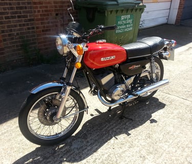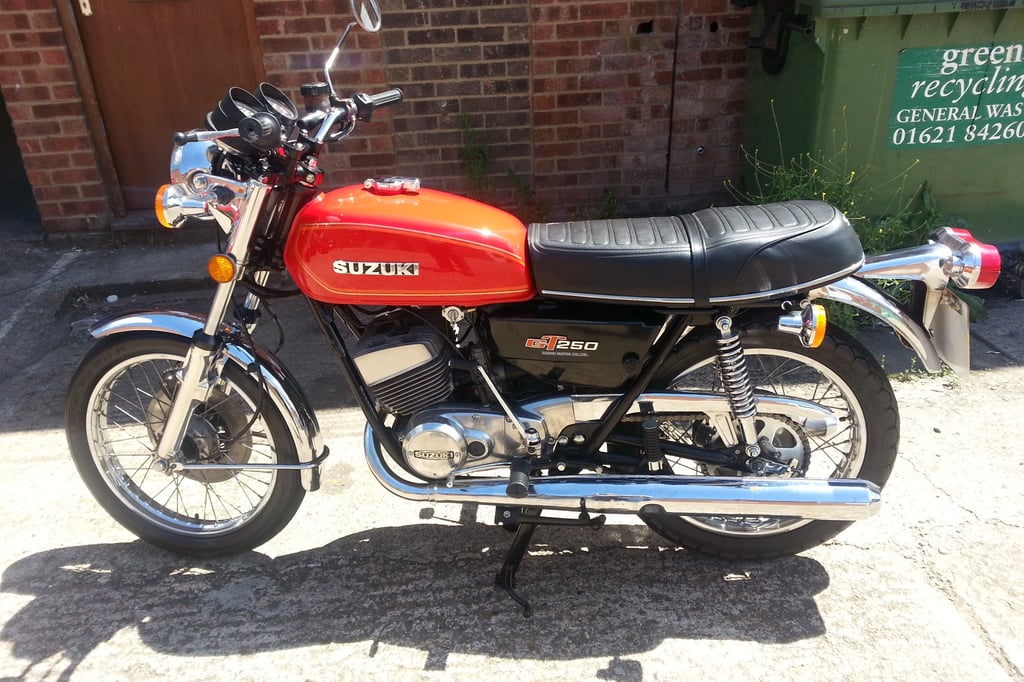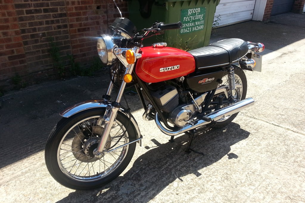 Got this very nice looking 1977 GT250 from a chap over Southend way. I'd gone over to look at a Suzuki GT550 he was also selling, which I purchased, had this 250. When I looked at the condition of this one I decided to get a deal to take the pair.