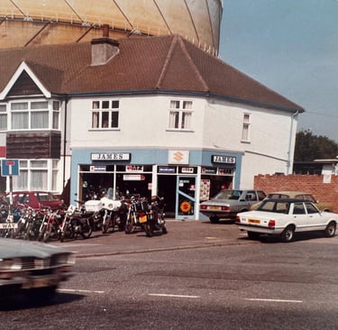 This first year was an insight into lots of things motorcycle related. Most days during college lunch breaks we would take a ride to the local motorcycle dealers in Grays (Essex). The Suzuki dealer was called James in London Road where we looked at the bikes and also where I bought the various supplies and replacement bits like from.