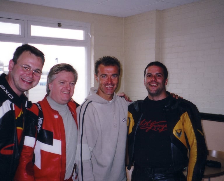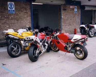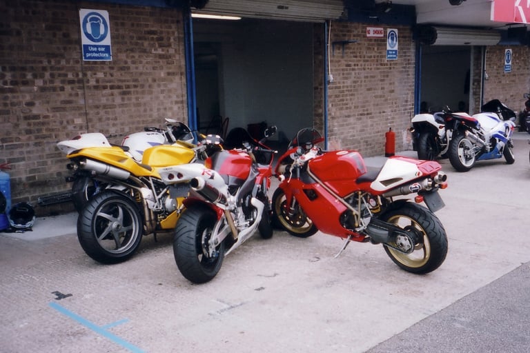 My R1 and a couple of mates on their Ducati 748 and 916s. Yes of course the R1 was quicker :-)