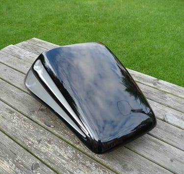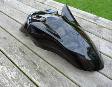 After I got a replacement front guard and had the outline look I was going for the bits were taken to the paint shop and sprayed gloss black with grey on the tail.