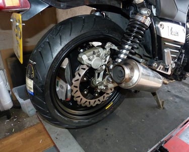 Over the years the once standard bike had already been modified with Dymag 17" Wheels & Ohliin suspension, but both the wheels, Ohlins and other bits had seen better days and needed a refresh.