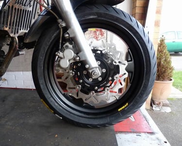 Wheels powder coated by CTC in Maldon, new boots and new wavy discs and EBC HH pad fitted all round.