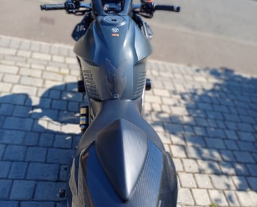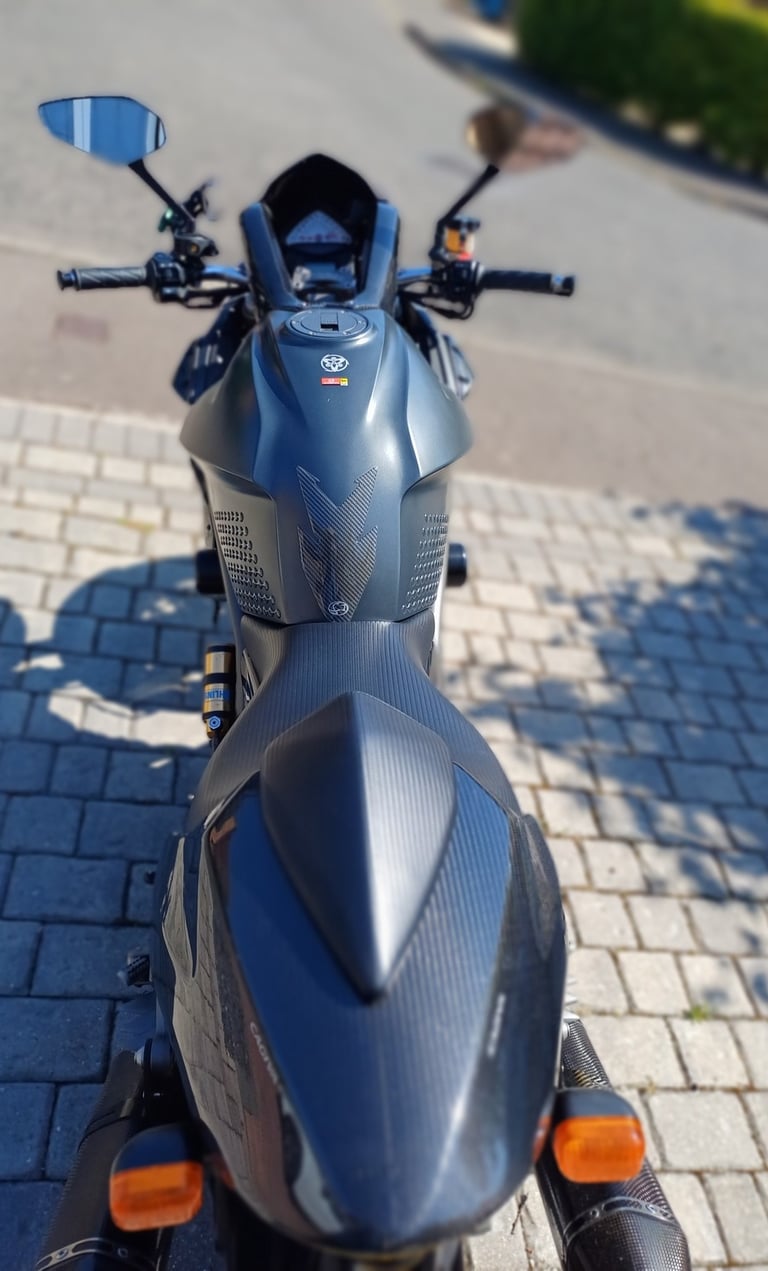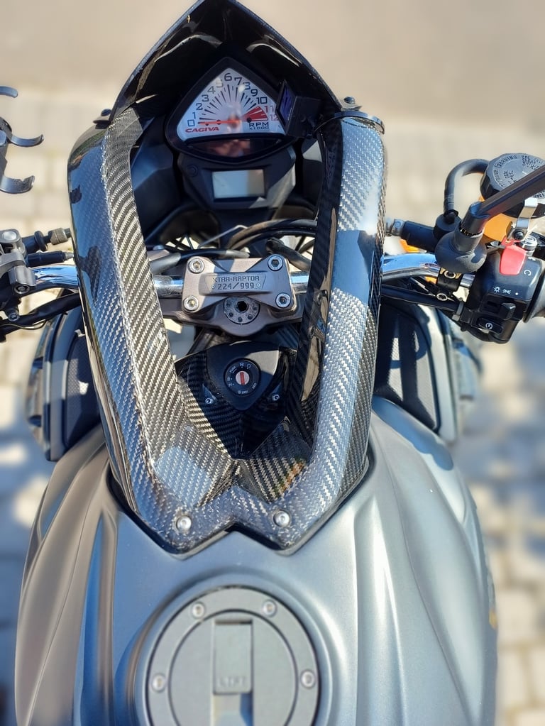 The Xtra Raptor had various updates over the standard and V versions of the bike. These included fully adjustable suspension, different Exhausts (not shown here) and stacks of Carbon replacing the 'carbon look' plastic panels of the other models.