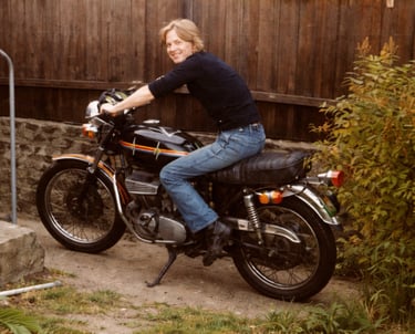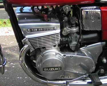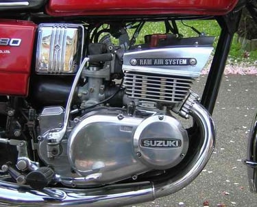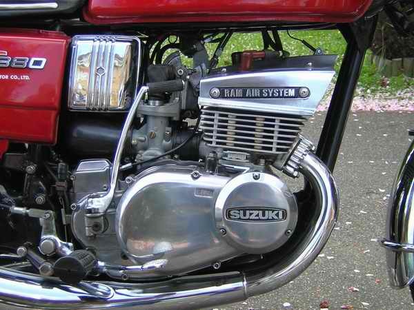This is my first GT380, a 1975 model M in Gypsy Candy Red which I purchased in 1979 with only 1500 miles on the clock