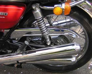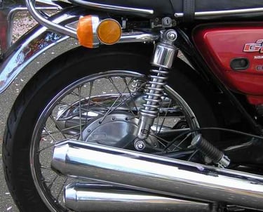A Few years later I managed to source New Old Stock (NOS) versions of the major parts including Full Exhaust Set, Tank, Shocks, Front Tubes, Indicators, Seat, Mudguards etc. and got Hagons to rebuild the wheels.