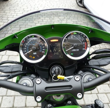When I got the bike I had already owned a bright Orange 2004 Kawasaki Z1000 (model ZR1000A2) for about 6 years so sort of already knew what to expect from the inline 4 engines. The Z1000 was actually 953cc with 127bhp and 95.4 Nm Torque and the new Z900RS was 948cc 110bhp and 98Hm Torque, which meant it had more grunt down low not as much at top end range.